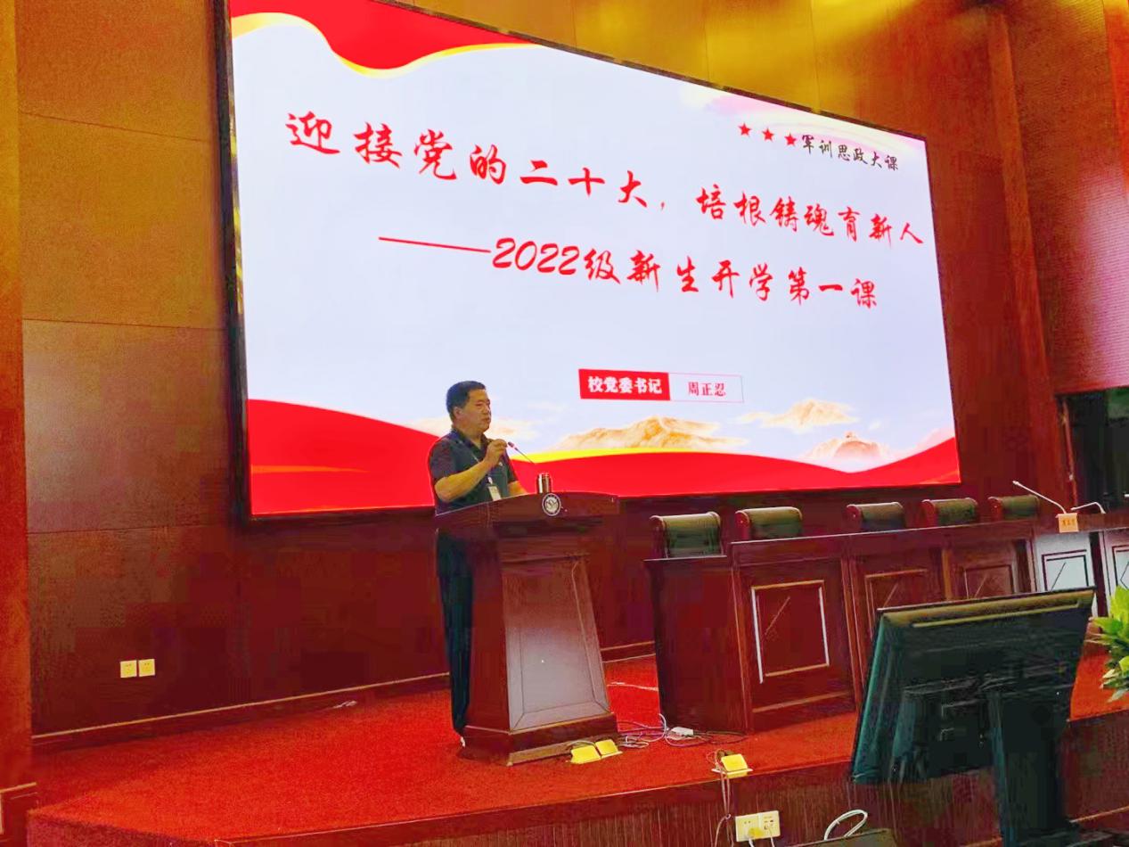 为深入贯彻落实习近平总书记关于深化思想政治理论课改革创新和“大思政课”的重要讲话精神,不断推动学校思政课改革与创新,9月15日上午,2022级新生入学的第三天,校党委书记周正忍在图书馆二楼第一学术报告厅为2022级新生们上了主题为“迎接党的二十大,培根铸魂育新人”的开学第一课。