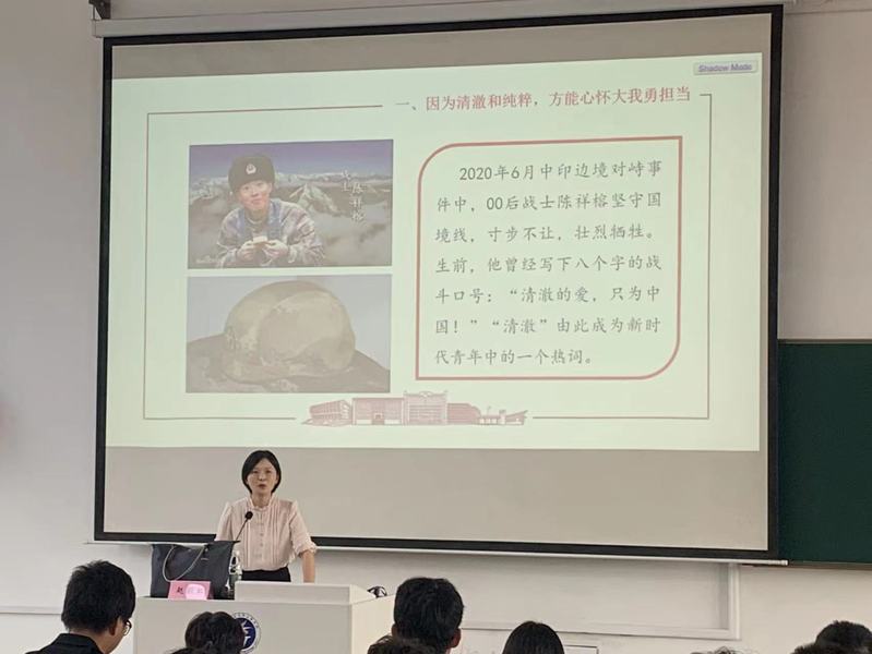 赵颖虹以18岁的卫国戍边烈士陈祥榕生前写下的战斗口号“清澈的爱,只为中国”,开启《做新时代清澈和纯粹青年》为题的宣讲互动,围绕“因为清澈和纯粹,方能心怀大我勇担当;因为清澈和纯粹,方能心力茁壮强本领;因为清澈和纯粹,方能心境澄明守底线”三大内容,深入浅出地带大家学习领会了习近平总书记重要讲话的丰富内涵,同时通过分享交流学习、生活、工作上的经历和经验,与大家一道探讨阐述了新时代青年该如何践行习近平总书记的殷切期望,勉励同学们要学思践悟,敢于担当,努力学习,练就过硬本领,自觉树立崇高理想。赵老师以扎实的理论知识和丰富的工作经验,给在场的团员青年上了一堂生动的思政教育课。